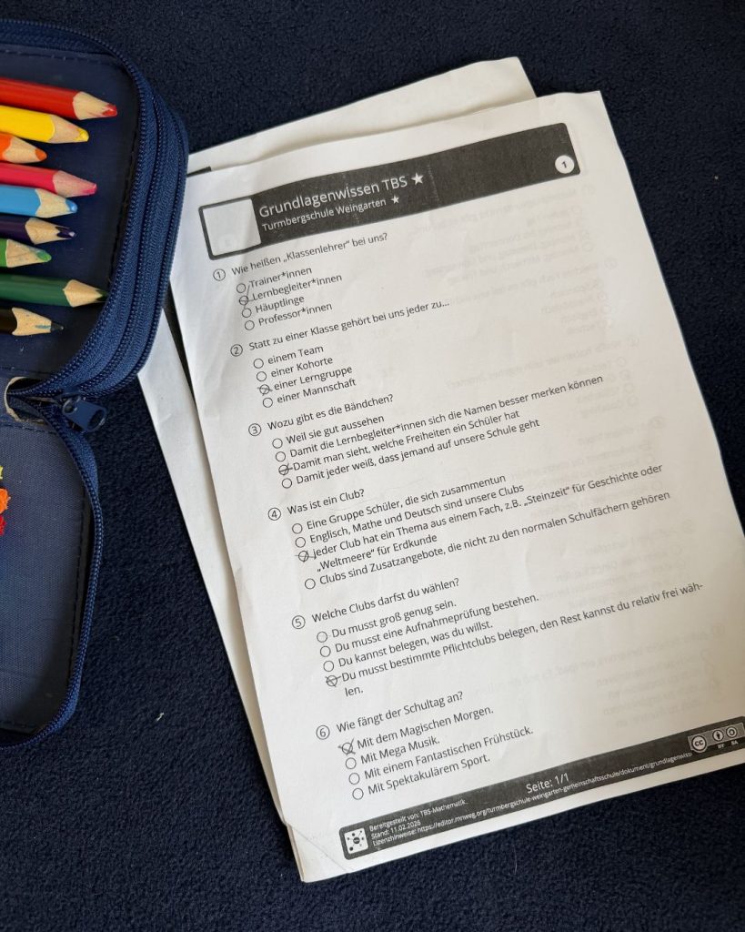 Regeln kennenlernen, Mathe- und Deutsch-Input erhalten, alle Sprechstunden besuchen. Und am Ende des Schultages: Feedbackrunde in der Lerngruppenstunde – ein echter TBS-Vormittag mit ganz viel Lernen und noch mehr Austausch.